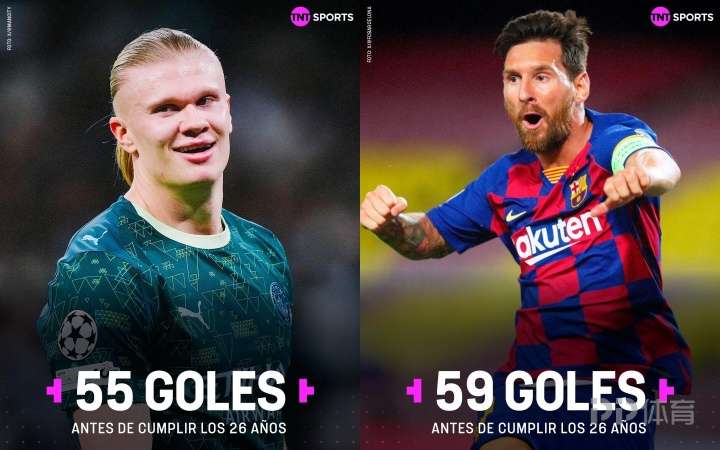 哈蘭德26歲前歐冠進球數僅次于梅西 同齡梅西多進4球