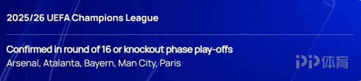 歐冠聯賽階段6輪戰罷,歐足聯官方發文,已有5隊確定晉級16強或淘汰賽附加賽。