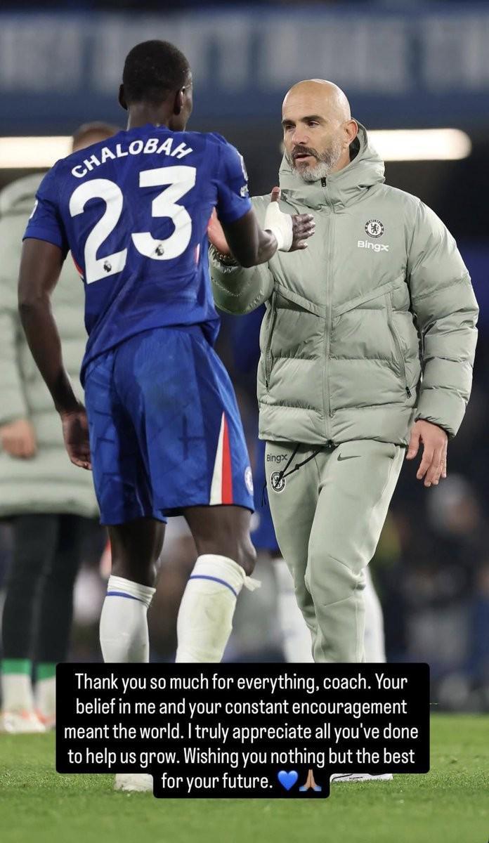 在切爾西官方宣布主帥馬雷斯卡離任后,切爾西后衛特雷沃-查洛巴在社交媒體發文告別馬雷斯卡。