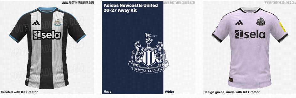 紐卡斯爾聯下賽季球衣設計僅為初步預測版本。主場球衣延續了經典的黑白條紋圖案,搭配淺藍色三條紋。而客場球衣的主色調為海軍藍拼接白色。第三球衣預測為純白設計,搭配黑色細節。