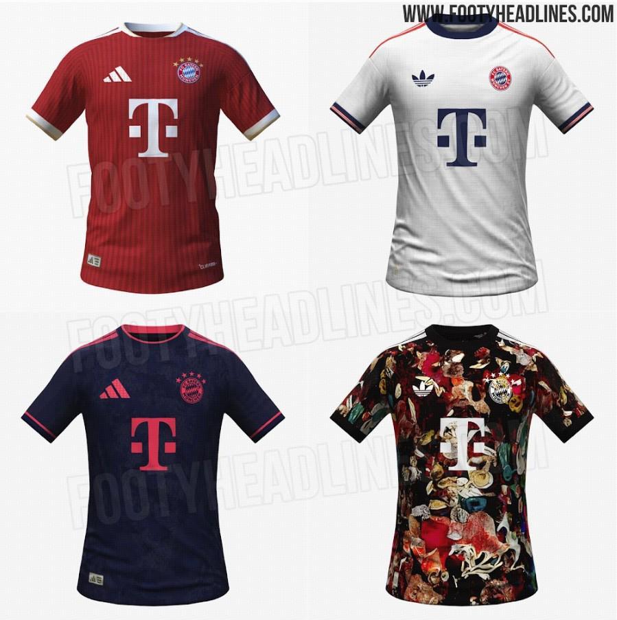 阿迪達斯將在 2026-27 賽季為拜仁推出四款不同的球衣,令人矚目。除了經典的紅、白、金三色主場球衣、帶有三葉草標志(以及紅色細節)的白、海軍藍客場球衣,以及現代感十足的炭灰色和紅色第三球衣之外,拜仁還將發布一款前所未見的、引人注目的第四球衣,該球衣底色為黑色,并飾有眼花繚亂的多色圖案。